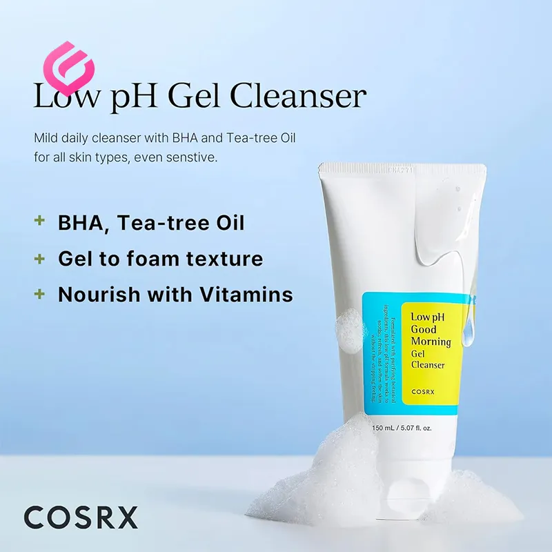 ژل شویندهی Low pH Good Morning Gel Cleanser از برند COSRX یک پاککننده ملایم و مؤثر است که با pH طبیعی پوست (۵.۵) تنظیم شده تا بدون ایجاد خشکی یا تحریک، آلودگیها، چربی اضافی و باقیمانده محصولات مراقبتی را از روی پوست پاک کند.